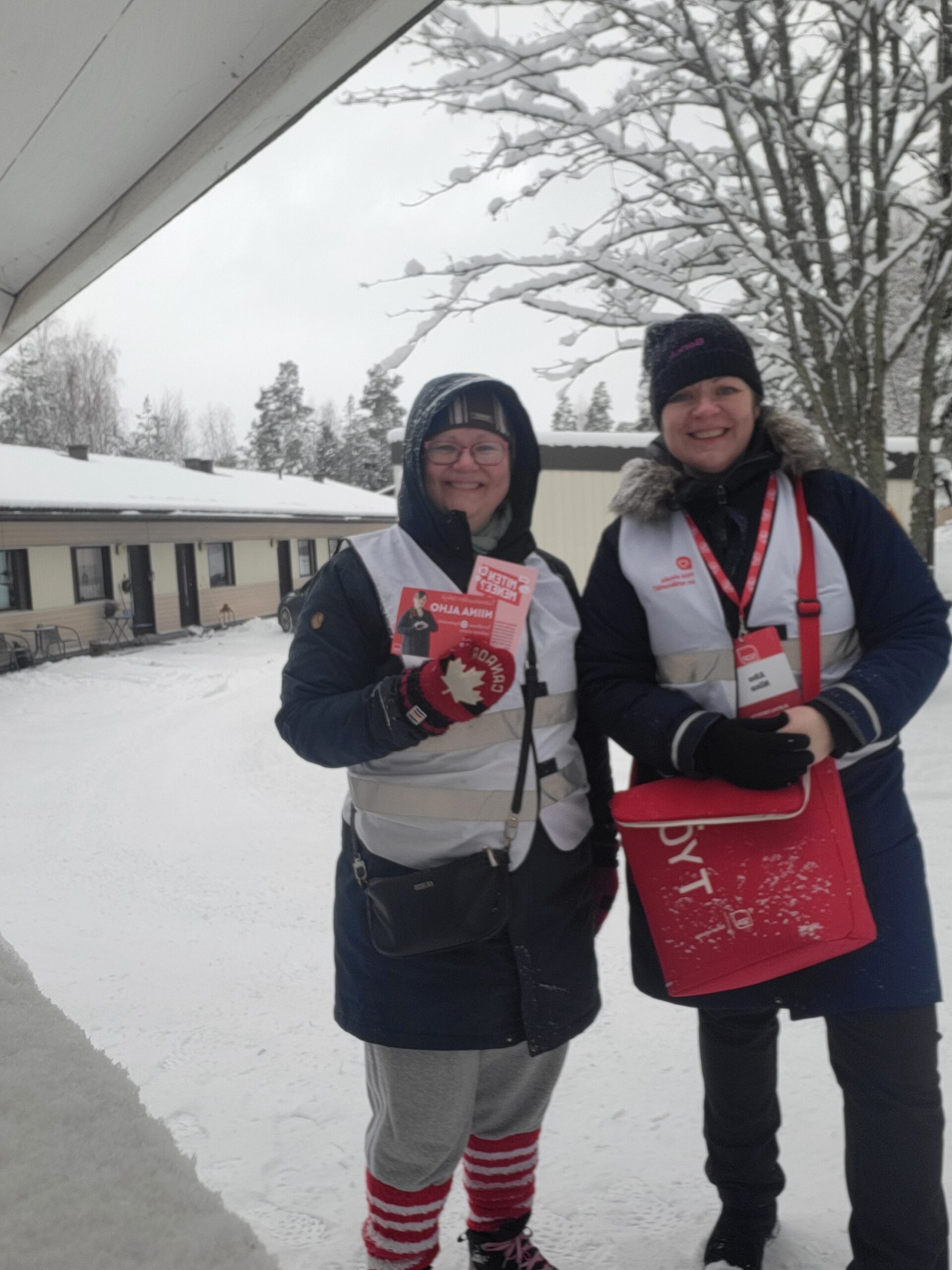 - Kaarinan joulutorilla joulukuussa jaettiin liukuesteitä.