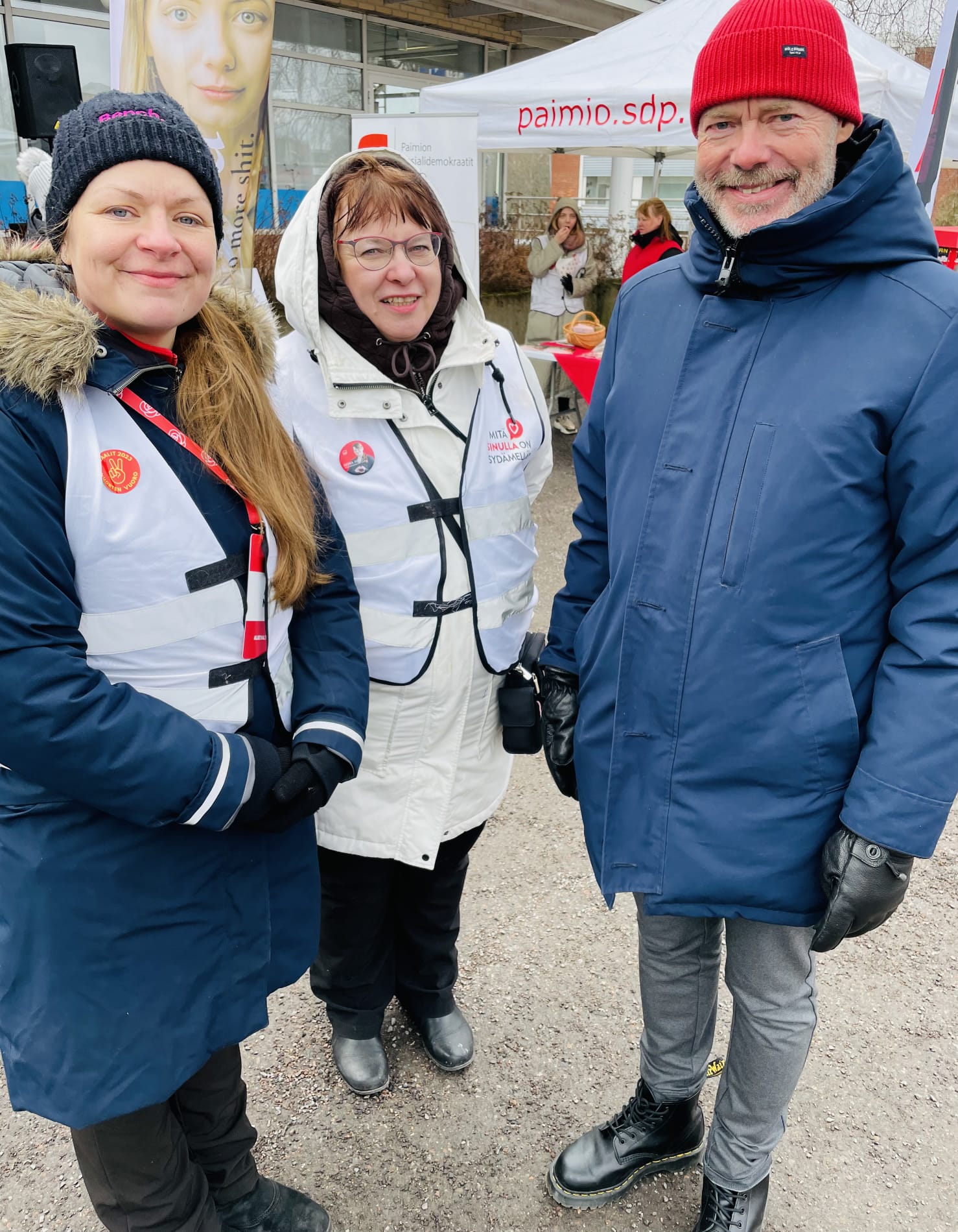 - Akin ja Marin kanssa kampanjoimassa Paimion S-marketilla