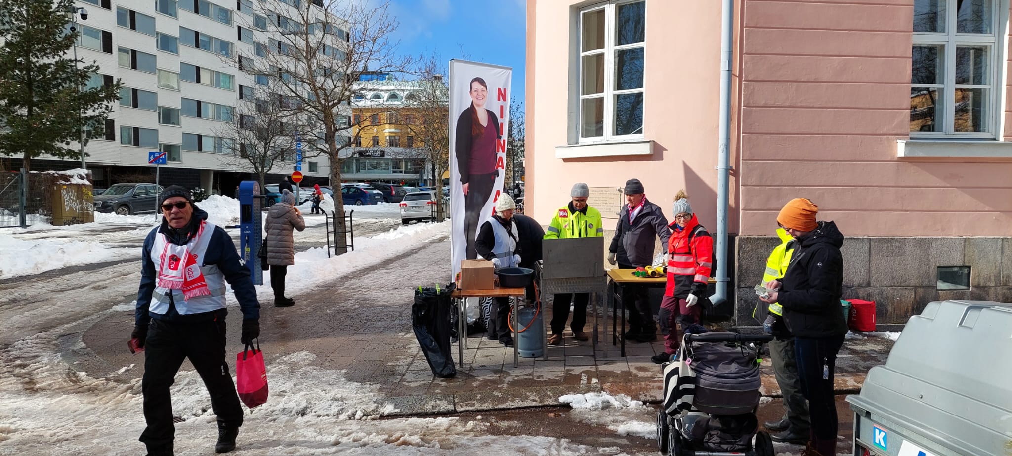 - Salon torilla kävi kova kuhina. Paikallinen ehdokas Saku Nikkanen (näkyy jossain taustalla) veti porukkaa hyvin grillimakkaralle.