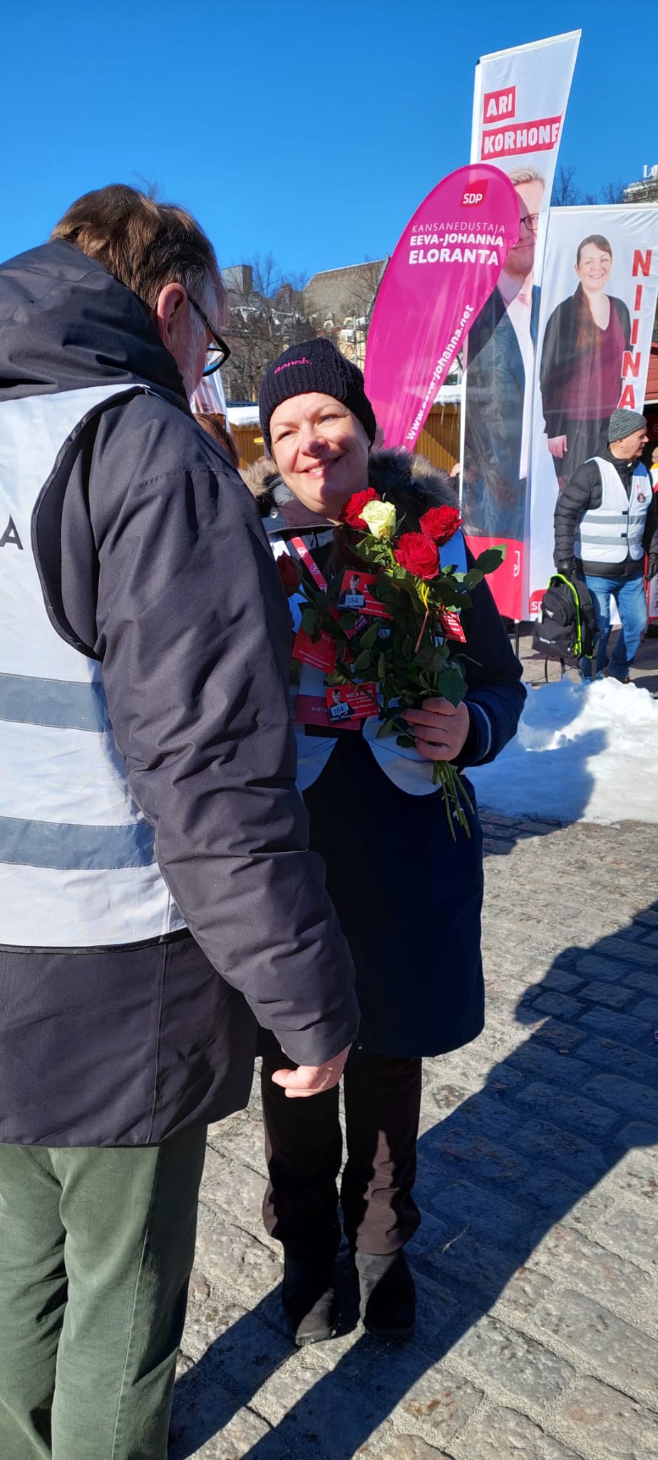 - Vielä jakamassa ruusuja kauppatorilla päivää ennen vaaleja.